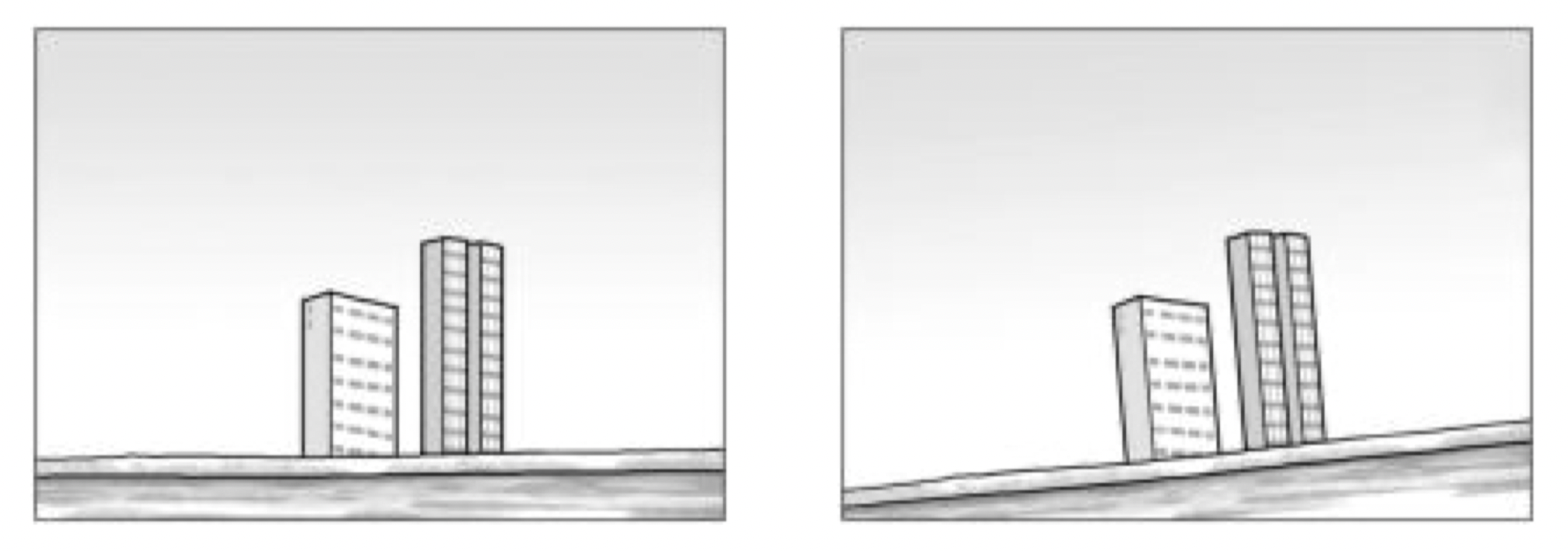 <보기> 새로 산 카메라의 성능을 시험해 보고 싶어서 OIS 기능을 켜고 동영상을 촬영했다. 빌딩을 찍는 순간, 바람에 휘청하여 들고 있던 카메라가 기울어졌다. 집에 돌아와 촬영된 영상을 확인하고 소프트웨어로 보정하려 한다.